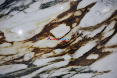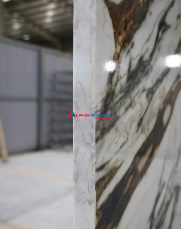 Full body printed quartz brings uniformity between the surface and the structure inside the stone slab. Printed quartz has all the outstanding characteristics of quartz such as heat resistance, good strength, scratch resistance, abrasion resistance while also possessing the beauty of natural stone, calacatta designs, marble, granite.